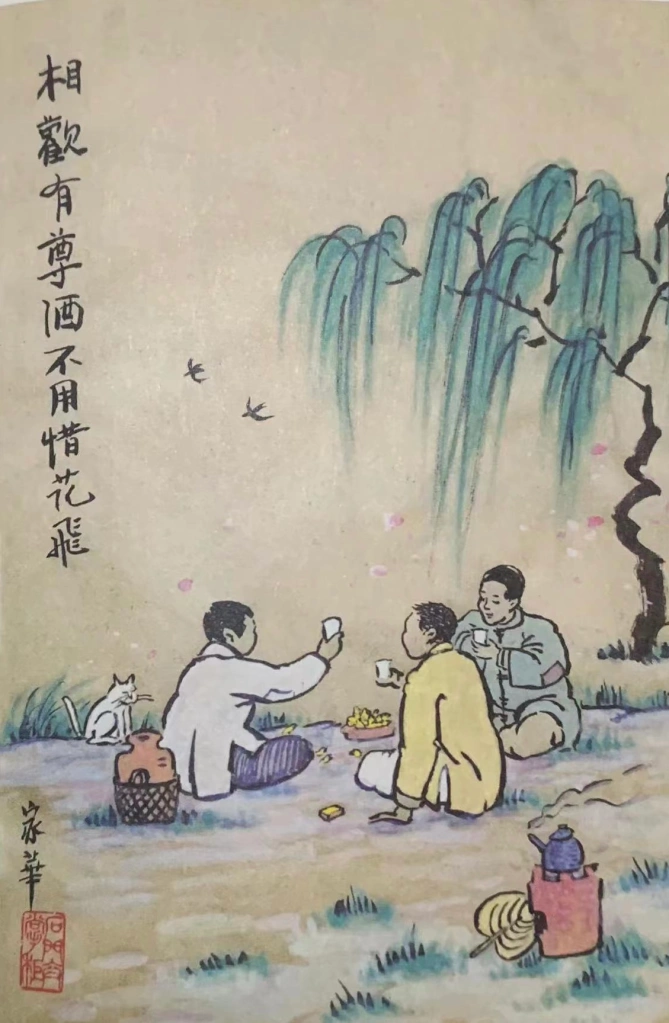 平静愉悦的状态令卞家华感受不到疲倦或沮丧。已经“多活了”26年的老卞对未来充满期待:“我打算一直画下去,很多老礼儿在现在的社会还是有生命力的。我随身带着小本,遇到人、看见事、勾起回忆,就用笔记下来。回家整理整理,再创作出漫画。希望小朋友们、大朋友们,都能喜欢,能学到一点东西,那就更好了。”丰子恺先生的一幅画中有这样的题词:人散后一钩新月天如水。这其中就蕴涵着丰子恺的艺术的精神,从他的老师李叔同,到他的弟子卞家华,都是这样,真诚地爱这个世界,一代一代的人来来往往,他们所传承的那种精神,却如这一钩新月,永恒地照耀大地。