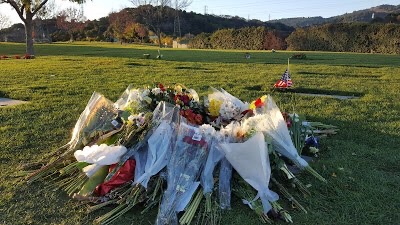 那一年的经历让我作为普通人深刻感受到了一己之力。随后的两年公祭日,我都提前贴在朋友圈,提醒湾区的华人去扫墓,我也依旧带着朋友同往。2018年的墓地依旧被鲜花环绕,还有整盆的兰花和大束的百合,有人把白色的秋菊整整齐齐围绕在墓碑两测,尽量不留下空隙。有一位署名Xin的留条,For all you have done for Chinese。