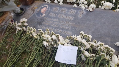 那天碰巧是星期六,我下午送娃去上课,正好有两小时的时间,就买了一小束花,开车到达墓地。我其实全无把握能找到Iris的墓址,这是我第二次进入墓区(第一次是友人安葬),对墓地全无了解,无从下手。只好先到visitor center处想找人问问,可是visitor center已经关门了。我在茫然中看到门口有一个巨大的名册,几乎有上千页,顿时又升起了些许希望。按名索骥,功夫不负有心人,我果真一步步找到了Iris的墓址。当我终于站在墓碑前时,的确是非常激动的。除了激动,还有一丝伤心和惆怅。12月中旬的北湾很是清冷,当时已近黄昏,四周颇有枯藤老树的萧瑟感。零零星星地有些墓址上已然出现花圈和一品红这样的节日花卉,可是Iris墓址周边恰好很空旷,唯有几片枯叶散落着,更衬托出孤单寂寥,而我原以为定会有鲜花铺满墓碑的。我清掉枯叶,把花插上,对着墓碑说了些有的没的,算是和Iris对话了,我想她的在天之灵应该能感受到冬日里的一丝温暖吧。那一刻,我对自己说,每年的这一天我会争取来看你。