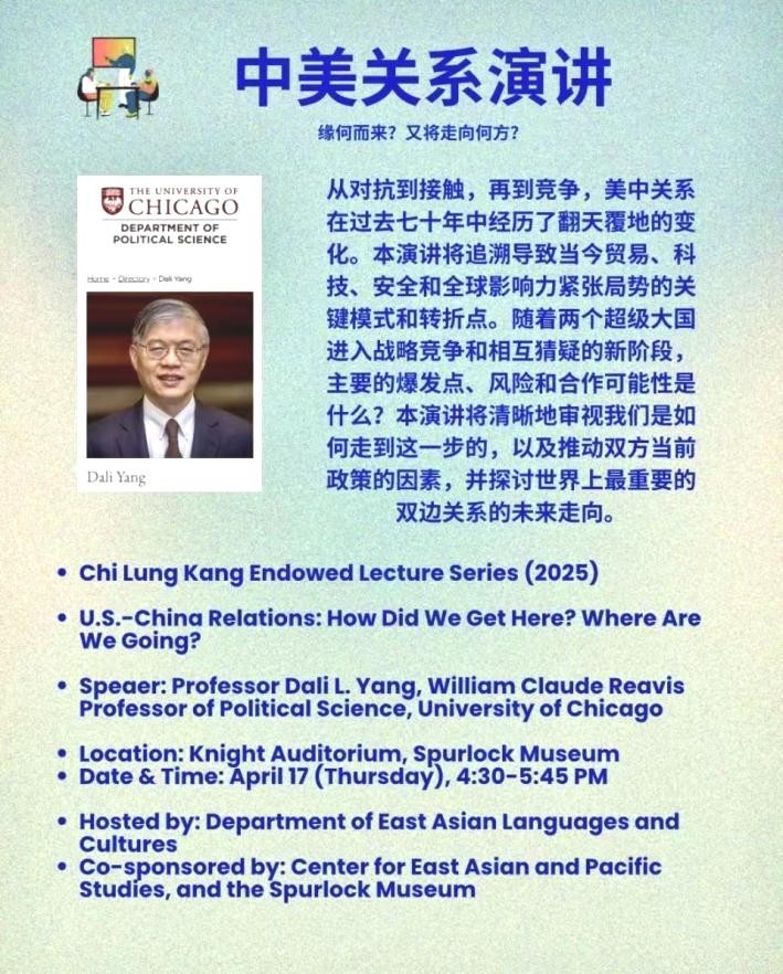讲座题目并不华丽 “美中关系是如何走到今天的, 未来会如何走向”(“U.S.– China Relations: How Did We Get Here,
