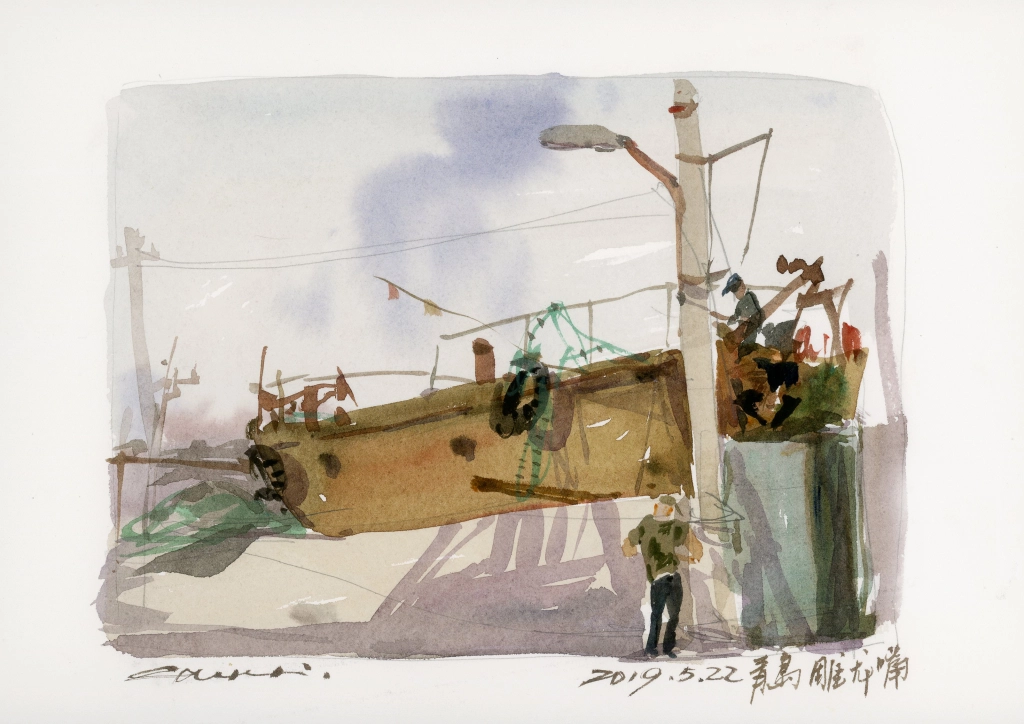 中午画了一张,下午还想一鼓作气再来一张,来青岛画了十几张小画,一直都没什么让我感到特别兴奋的场景。一直在找,去感受这完全陌生的地方,去抓住不一样的东西。毕竟,总是画自己熟悉的东西,总是让自己处于舒服的区间,很难会有进步。我时刻都在提醒自己,画自己不擅长的东西,一张一张不停地画,保持这股冲劲儿。