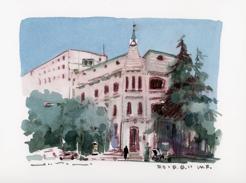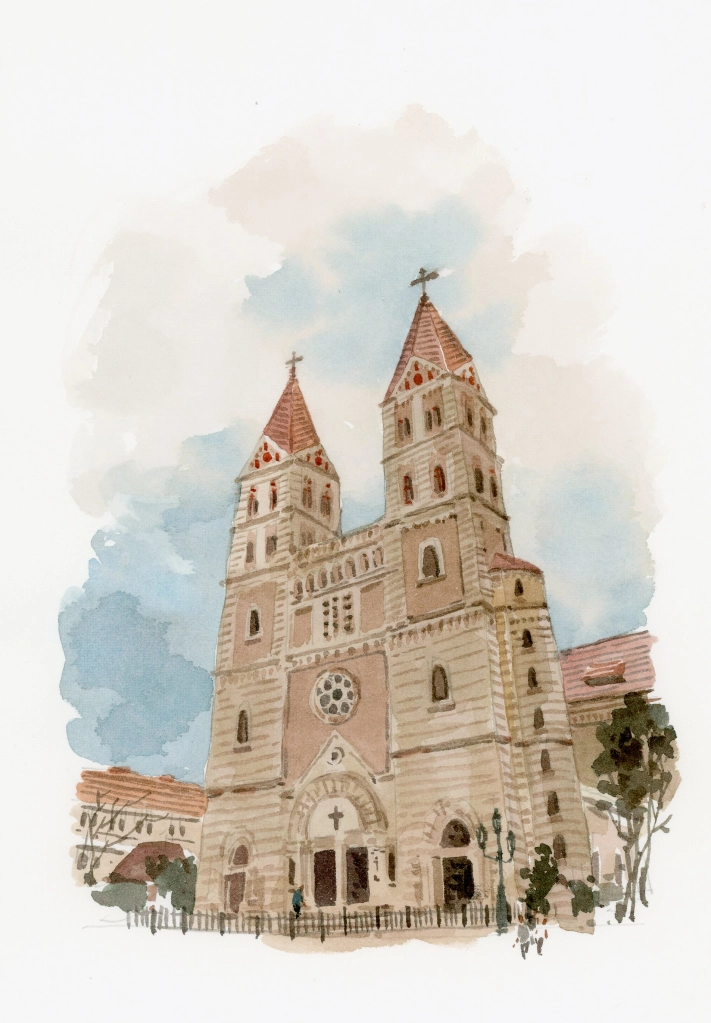 初看到这座天主教堂的时候,我就知道它不好画,至少暂时我是画不好的,我需要再酝酿一下。