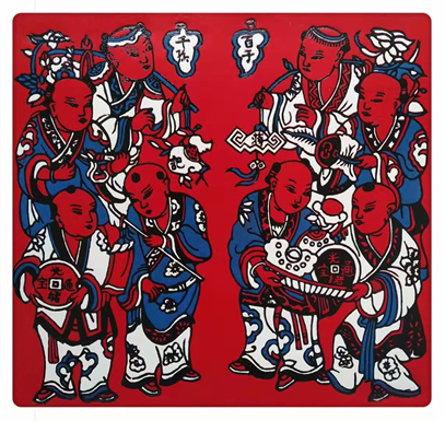 《百子·千孙》,绝版套色,25×23.5cm, 蒋志坚 制作