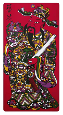 泉州年画品种多样,内容丰富,多吉祥题材,以祝愿和讨吉利为主,直至近代仍属主流。泉州年画可分三大类。(一)用于春节张贴的门神与门画。常见的如“神茶·郁垒”“簪花·晋爵”“招财进宝”“春招财子”“灶君”“狮头衔剑”“八卦图”等。(二)用于纸扎的图画及图案纹样。如“八仙”“西游记”“三国演义”“白蛇传”“牛郎织女”及龙凤图案、花边等。(三)用于游艺的图纸。如“升官图”“葫芦闷”等。
