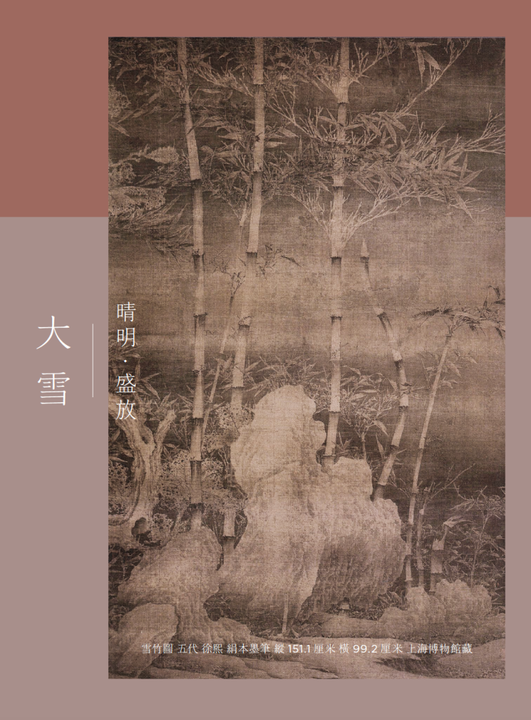 F:大雪节气进入北方雪盛之时,《雪竹图》正如这时节的盛大隆重,给人以强烈的视觉冲击。