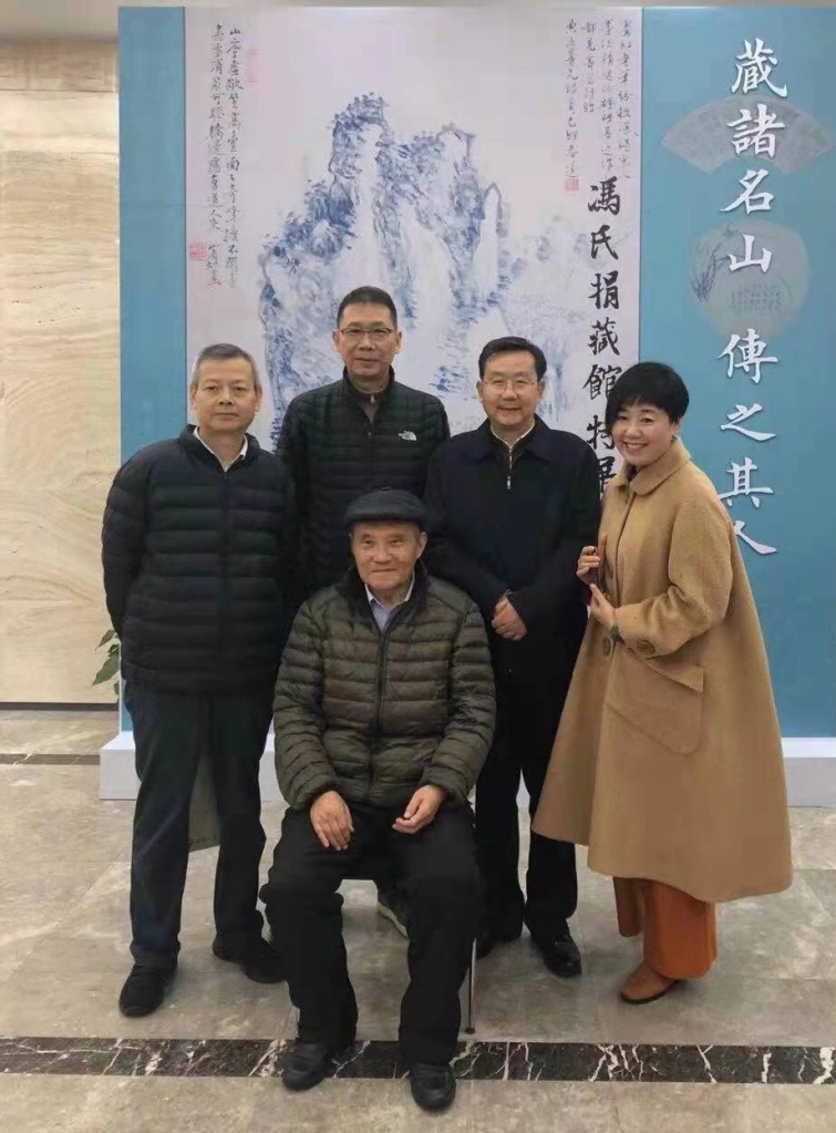 作者将冯氏藏书藏画捐献给武汉大学,照片左-为原武汉博物馆馆长刘庆平,右二为江汉大学副校长涂文学,均系作者于武汉师范学院执教时学生。
