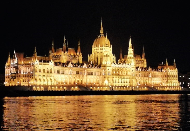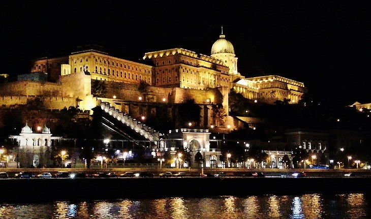 在宾馆楼下吃完晚饭,我来到多瑙河边散步,宾馆离滨江很近。天色已暗,眺望对岸布达,山坡上灯光烘托下的“布达城堡“特别显眼。昔日的匈牙利国王,是否也是从那儿俯视对岸“佩斯”的芸芸众生?这座城市,曾经与维也纳争艳,曾经被称为欧洲的“小巴黎”,曾经在多瑙河边造出一座叹为观止的议会大厦与伦敦泰晤士河边上那老牌帝国大厦一决高下。多瑙河两岸的布达与佩斯,晚上梦幻,白天大气。