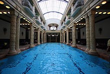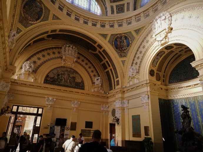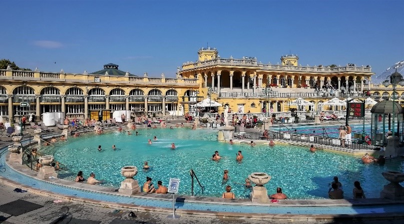 可能是罗马人开了公共浴场的先河,可供洁身休闲社交,但罗马浴场肯定不如这座巴洛克风格的浴场豪华气派。土耳其(奥斯曼帝国)曾经在统治匈牙利(1541-1699)期间修过浴场,布达一边就有土耳其浴场(hammam)。西切尼大浴场建成于奥匈帝国后期1913年, 布达一边的另一个浴场Gellert始建于1912年。可见布达佩斯温泉浴场更多为奥匈帝国时期的盛世象征,巴洛克的豪华装饰可视为一种帝国盛装,而非土耳其伊斯兰文化的一部分。