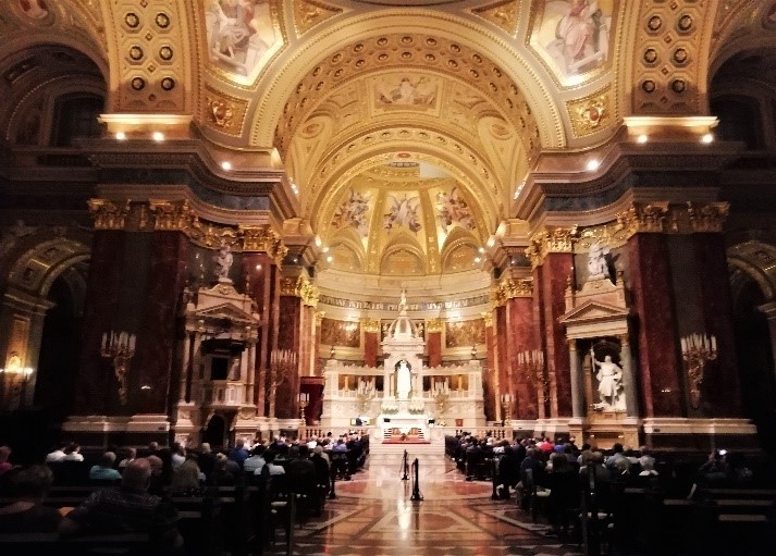 布达佩斯最大的教堂,圣斯蒂芬大教堂(St. Stephen’s Basilica)于奥匈帝国成立之际开建,历时半个世纪,1905年建成开放,让我想起伦敦的圣保罗大教堂,同为文艺复兴风格建筑:穹顶取代了高耸入云的哥特式尖顶,给信众带来安全感和归属感,把信众的注意引向“此在”,而不是通过林立高窗折射的眩目阳光唤起众生对天堂的冀希;回廊呈现的圣经场景,也试图建立更为感同身受的人间共情,而不是对圣徒的仰视、敬畏、和距离;教堂的平面,不再是狭长刻板的十字架,而是宽敞温馨的空间;温润的材质(如大理石)和棕色贴面取代了瘦骨嶙峋的苍白石料骨架。总之,文艺复兴风格的天主教堂把天堂人间化了。它代表一种新的审美趣味。