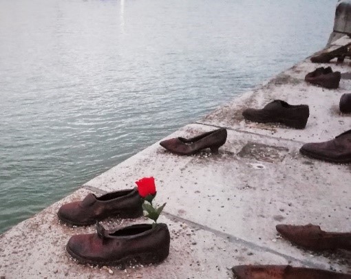 1944-45年初,多达两万犹太人被匈牙利的反犹政府押至多瑙河边,让他们脱下鞋,然后将他们击毙并推下河。