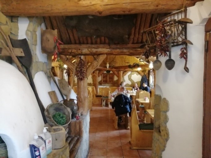 我在吃这件事并不讲究,吃上个兰州拉面千里香荠菜馄饨就能幸福感油生。从贵族做派的“纽约咖啡”到街头小摊的煎饼果子,我都喜欢。从“油管“上知道匈牙利的牛肉汤Goulash口碑很好,所以此次到匈牙利我想尝遍布达佩斯的Goulash。第一天在宾馆一安顿,就在宾馆内的餐厅喝了一碗。最后一天希尔薇娅和亚努斯请客又品尝到不同的”古拉什“。这个餐馆位于闹市,却有独特的乡村风味的装饰。城里坚硬的石头里多了一些乡村的木质风味(见下图)。连Goulash的做法,显然也是老派的慢炖,虽然肉煮碎了“卖相”差点,但更加入味。