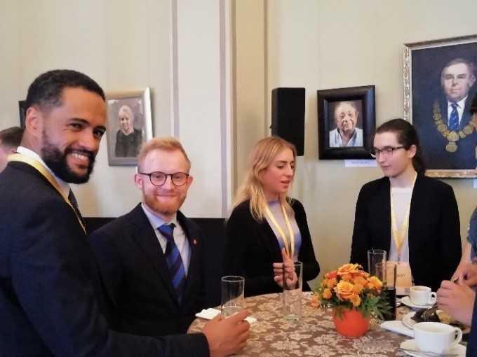 匈牙利的年轻人给我很不错的印象。大方热情,而且大多能说英语。希尔薇娅课上的研究生们,比美国学生对世界更具有好奇心,虽然胆子没有美国学生大,什么都敢说。这一点我在土耳其时和年轻人接触中也有同感。我在匈牙利美术馆十九世纪绘画馆见到的两位女大学生,把我当导游了,她俩竟愿意听我海聊一小时西方美术!这次会务专门负责跟我联络的胖小伙Peter很健谈, 宾馆里会务坐台的 Kira非常sweet, 会展厅的美丽大方的Kinga 俨然是项目主持了,还有跟我交谈的获得国家奖学金的大学生们,和我交谈完全没有障碍(下图)。