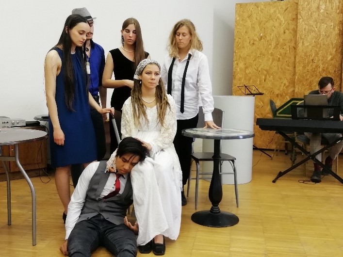 会议的第二天,我随会议组织方去布达佩斯的市区里的一家艺术中学参观。这所学校向全国招生,报考踊跃,每15名报考者只能录取一人,即要测试基础能力,又要测试创造想象力。我们在那里走访了很多教室,最后几位学生还在音乐老师带领下为我们表演了格什温的歌剧小品《忧郁星期一》(下图)。在交流环节里,音乐老师说,我们学校独特的地方就是在学生动手制作中获得一种经验。不仅是技能,而且是体验和感悟。我觉得他抓住了教育的本质。艺术教育在美国经常被看作可有可无。没有这种以动手制作、创作为主的艺术教育的学校教育,是不完整的,甚至会失去教育的本来意义。
