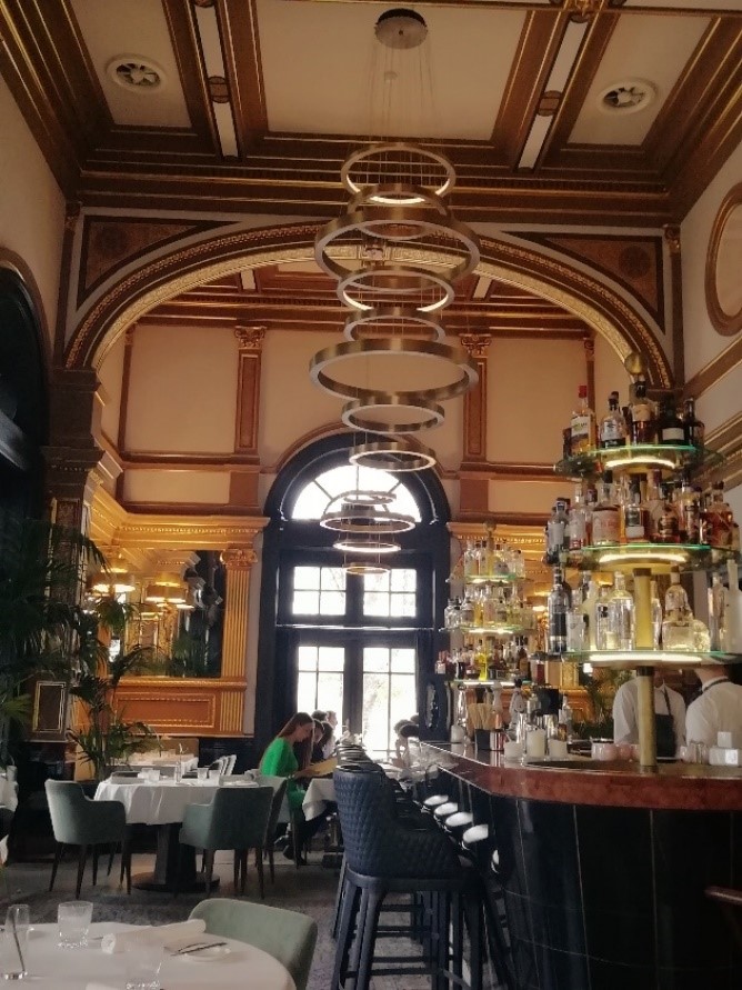布达佩斯最后的三天,是我最放松的三天,不是说来到布达佩斯的日子,而是说2020年疫情以来。我去了布达城堡边上叫一个叫Felix的餐馆。非常喜欢这家餐馆的内装,现代气息中不乏古典风味,窗口坐了三个乐师(单簧管,小提琴,吉他)在为客人助兴演奏(见下图)。我请求换了一个离乐师们更近的位置就坐。我边上坐着一位三十出头岁的男士,面对面坐着的是一位年轻亚裔女士,估计是他认识不久的女朋友,两人之间还有几分拘谨。男士告诉我他从卢森堡来。卢森堡与法国接壤,很小(面积2600平方公里,不到上海一半,人口64万人),但很富有(人均GDP 11万!)。我开玩笑说,只要不想当国王,在卢森堡可以活成个快乐的隐士,但要当国王,还是要去法国。他说也可以从另一个角度,在卢森堡当个小国的国王,能活得比法国国王更滋润。倒也是。凤姐早说了,大有大的难处。这是一顿我吃的最享受的午餐。买单后我给乐师们三千弗林的小费,感谢他们让我度过美好的两个小时。
