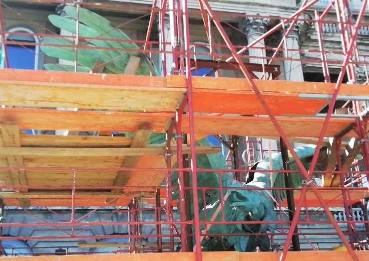 布达城堡中央广场的神鹰雕塑(正在大修)