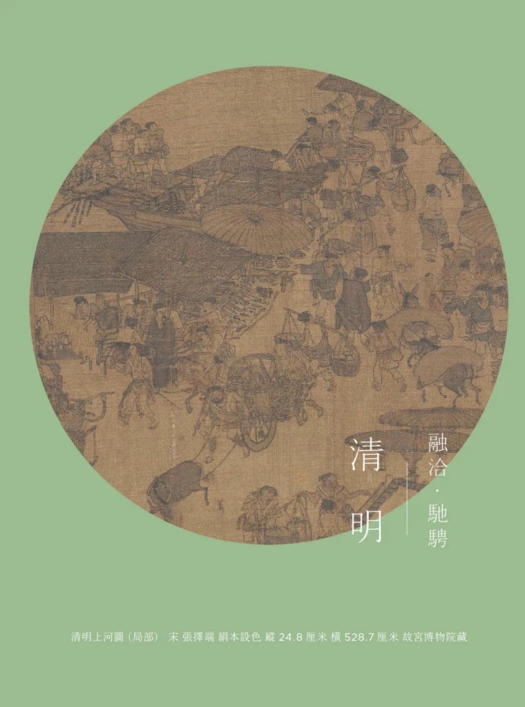 清明之“世俗”。我们终于回到清明节气的用图——《清明上河图》。关于这幅名画的学术研究非常之多,观者的认知与理解也因人而异,这正体现了艺术应具有的开放性与包容性。《清明上河图》全卷在故宫博物院展出时我有幸前往观赏,在此谨分享一点直观感受。原作仅24.8厘米的宽度,仿佛形成一个微观世界,线条细如发丝却纤毫毕现,可以看到人物的表情、事物的质感与细节,而528.7厘米的长度起承转合节奏分明、疏密有致,实属“致广大、尽精微”的典范,以中国传统技法所呈现的严谨写实令人叹为观止。画中所描绘的北宋都城东京的繁华,总体上朝气蓬勃,与今天的大都会如魔都上海在气势上亦可比肩,毫不逊色。