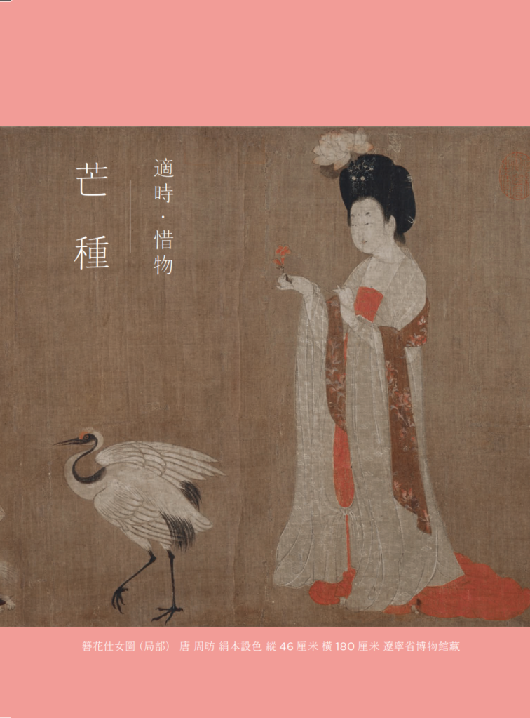 S:芒种众花退位,籽实渐丰,是从浪漫主义到现实主义的转换,及至冬天寂寥的超现实主义,一年的流转轮回便完成了。这个过程各有各的美。加缪说:“美,永远不会让任何事物——神性的或理性的——走向极端,因为它从不否决任何事物,它顾及万物,平衡暗与光明”。既然美好可以平衡暗与光明,那么我们不妨趁此芒种“适时”地颓一个,细细感受一番惜物的心情,反正颓过之后可以在夏日的繁盛中很快平复。《簪花仕女图》略带懒散情绪的婉约绮靡之风,仿佛繁华落尽之前的回眸时刻,似乎也正适合这个时节。