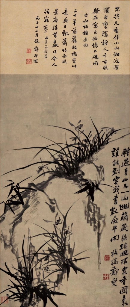 梅、兰、竹、菊、松,是文人传统中君子的象征,而幽兰与修竹更因其超然淡泊的隐者之风,简练“抽象”的形式感,绘画用笔的书写性而备受推崇。孔子以兰寓美德:“芝兰生于深林,不以无人而不芳”(《孔子家语》)。屈原以兰为挚友:“扈江离与辟芷兮,纫秋兰以为佩”(《离骚》)。孔子与屈原心目中的兰,在韩愈的补录诠释中融而为一: