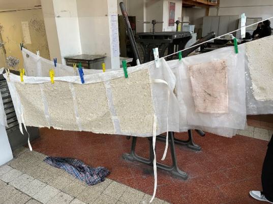 为了飞尘技法所准备的风箱也需要用吹风机把松香粉吹散,这样的的硬件并没有消磨大家的创作热情,不那么便捷的操作仿佛成为了一种必须为艺术而作的牺牲。这个专业之所以还能够保有一席之地也是它能涵盖出版印刷相关的知识,即使不作为艺术品,版画也可以与商业邻域较好地结合。从美院的课程安排来看,除了传统的版画技法(蚀刻,水印木刻,丝网版画)和艺术理论,学生们还会学习到艺术出版课程,手工造纸课,插画课等等,美院会尽可能地去拓宽专业的使用范围。