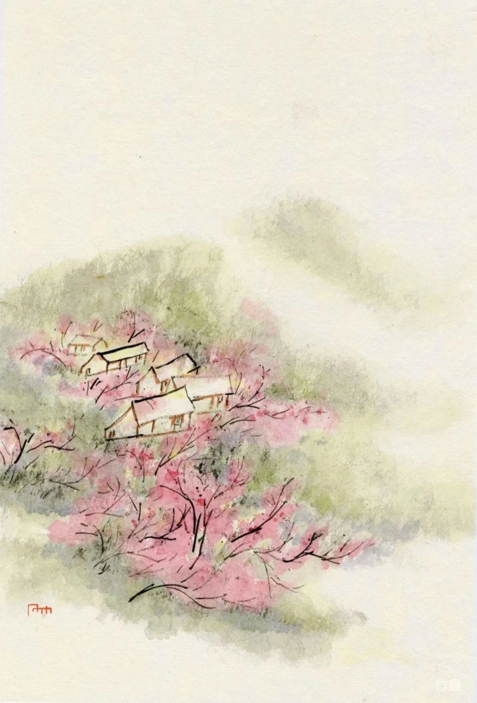 伏案劳作之余,案头恰有部《王右丞集》,倦了翻翻,从现实的世界里,扯脱出来,去到辋川的世界里神游一回,兴致起来,又起了将《辋川集》中的诗画成小画的念头。开始也没想着要完整成套,因此连裴迪和作也选了些画出来。虽然裴迪的诗,和王维比起来,差距不小,但我想这样的诗歌唱和使读者观者,更能完整体现昔日王维与道友浮舟往来,弹琴赋诗,啸咏终日的意思。我并没去过辋川,只在网络和书上,见过好事者寻幽访古,去到当年辋川所在地拍摄记录的现实情形。唯一和辋川有关的,就剩棵据说是王维昔年手植的银杏树,其余一切早已物是人非,加上千年的气候变迁,而今似乎连怀古的空间都彻底失去,实在令人神伤。