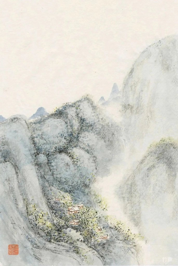 这组作品的完成,时作时辍,有些内容,落笔便成,有些则反复画了几稿,也不满意,有些几稿画下来,各有各的好,有些至今也依然觉得不够满意。推敲取舍,前后两年多时间,废画三千有些夸张,但也绝不止三百。《辋川集》中四十首诗,我完成七十多开。今春上海明珠美术馆,策划了一个名叫《诗与山河——画家竹庵笔下的辋川集》小画展。我从中选出四十张,加上一张《山中与裴秀才迪书》作为整组画的姊妹篇,构成一套,寄去了上海。