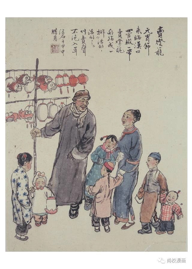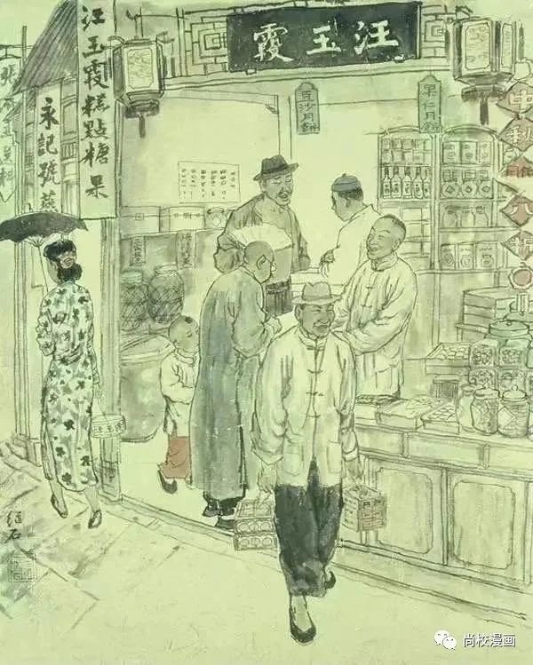 他的漫画很有幽默感,常会引人作会心一笑,我对他的漫化感觉,是幽默多于讽刺,对漫画对象,有讽刺性但又不至于尖锐得扎人至痛,甚或在讽刺中还透出了那么一丢丢或浓或淡的悲闵情绪。这是我很喜欢的一种艺术表达方法或者说是一种与人为善的处世态度。至于他当时发表在杂志上的设色风俗画作,由于是零星看到,所以我难以窥见他的着色民俗风情画之全貌,但也能从所见的画幅中体会得到其对社会底层百姓生活的熟悉程度,以及他对大千世界怀揣的一颗好奇之心。