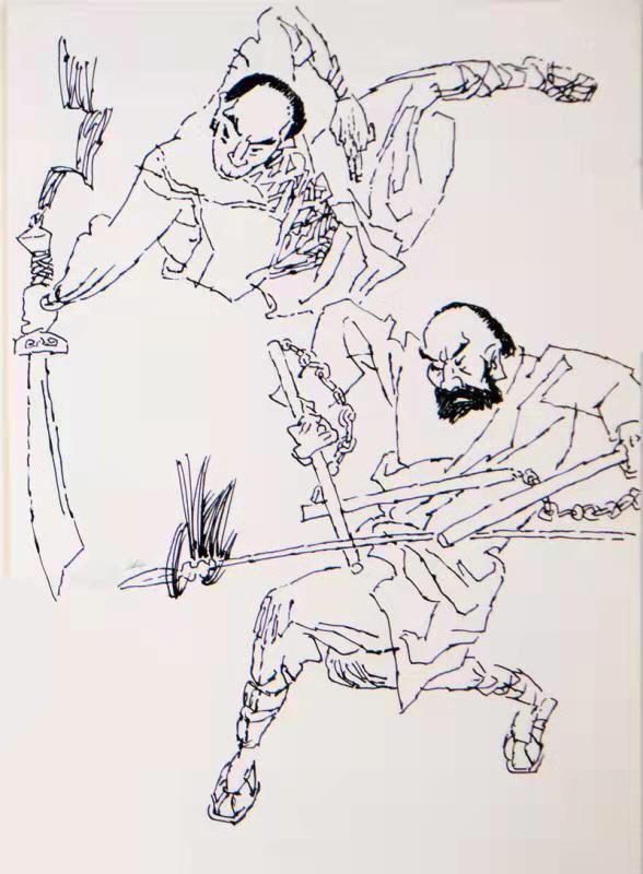 成年后,八十年代,画武打连环画,武打插图,略知南拳北腿之皮毛,勾画些花拳绣腿之招式,很倾注了些激奋。
