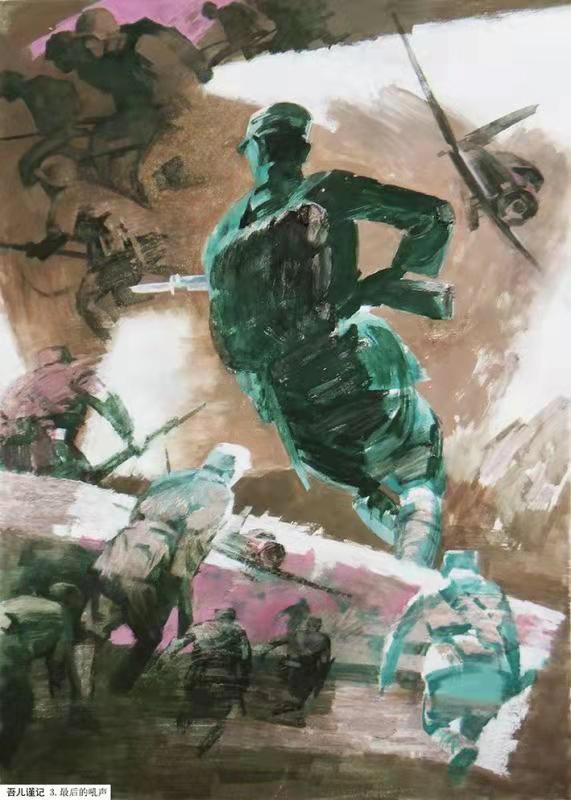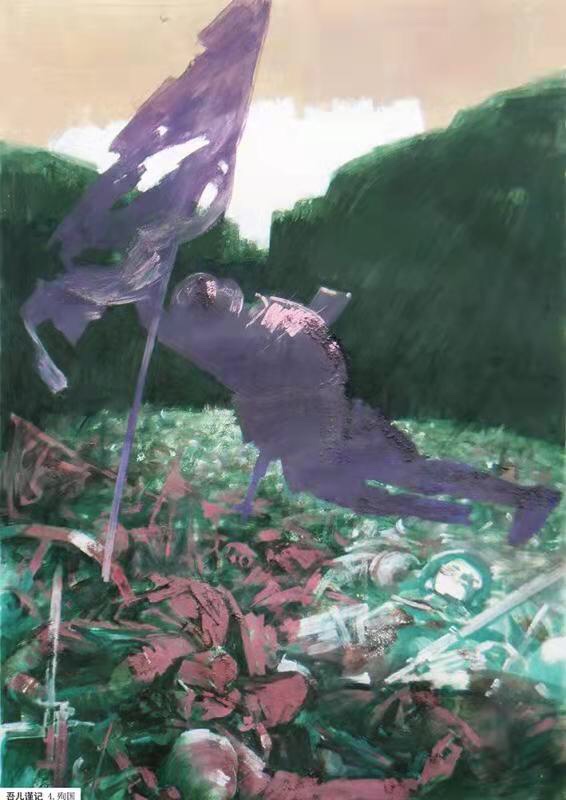 思想有所成熟后,创作中凡战争题材便有所选择了,画过反侵略战争(代表作为抗日题材组画《吾儿谨记》),非义战则避开,后来这一类也少画了。其实我性本善,具悲悯心,也知道“将军脚下白骨堆”一说。
