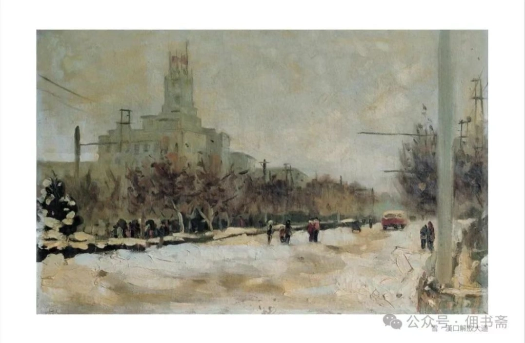 - 上二图为王居平先生画作,均入藏湖北美术馆。一为《雪/汉口解放大道》,一为《争取和平与友谊》,曾作为一九五五年七月号《美术》杂志封面画。