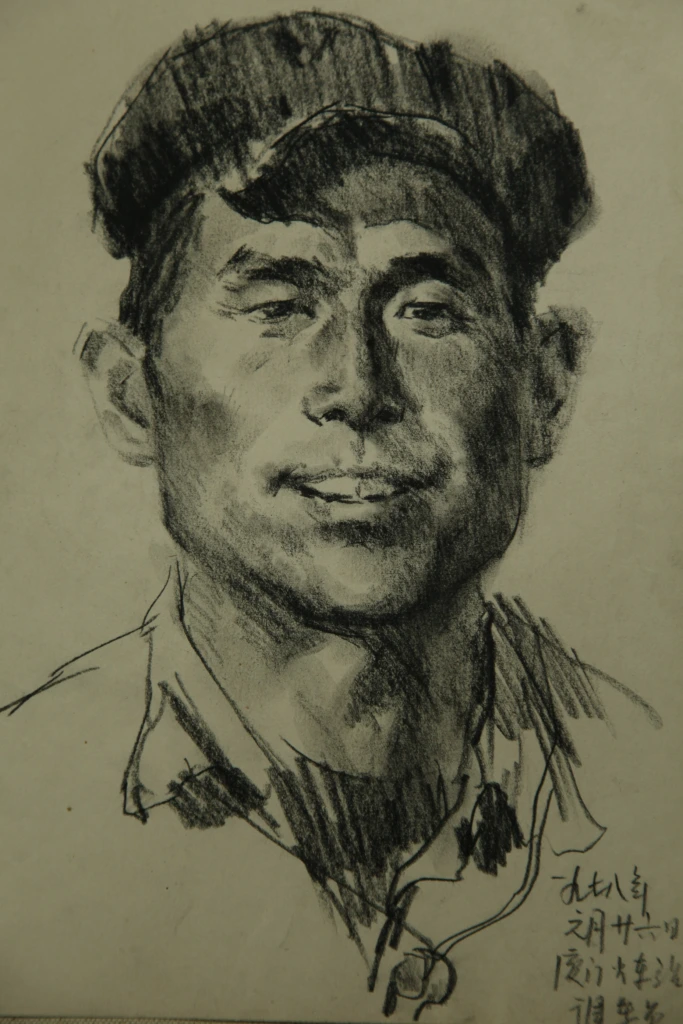 “记录与刻画”,都是七十年代以前的速写,最早的是那幅正在打电话的公社书记,那是在央美大一时到北京郊区官厅水库花园公社劳动锻炼时画的。其余就不一一细说了。