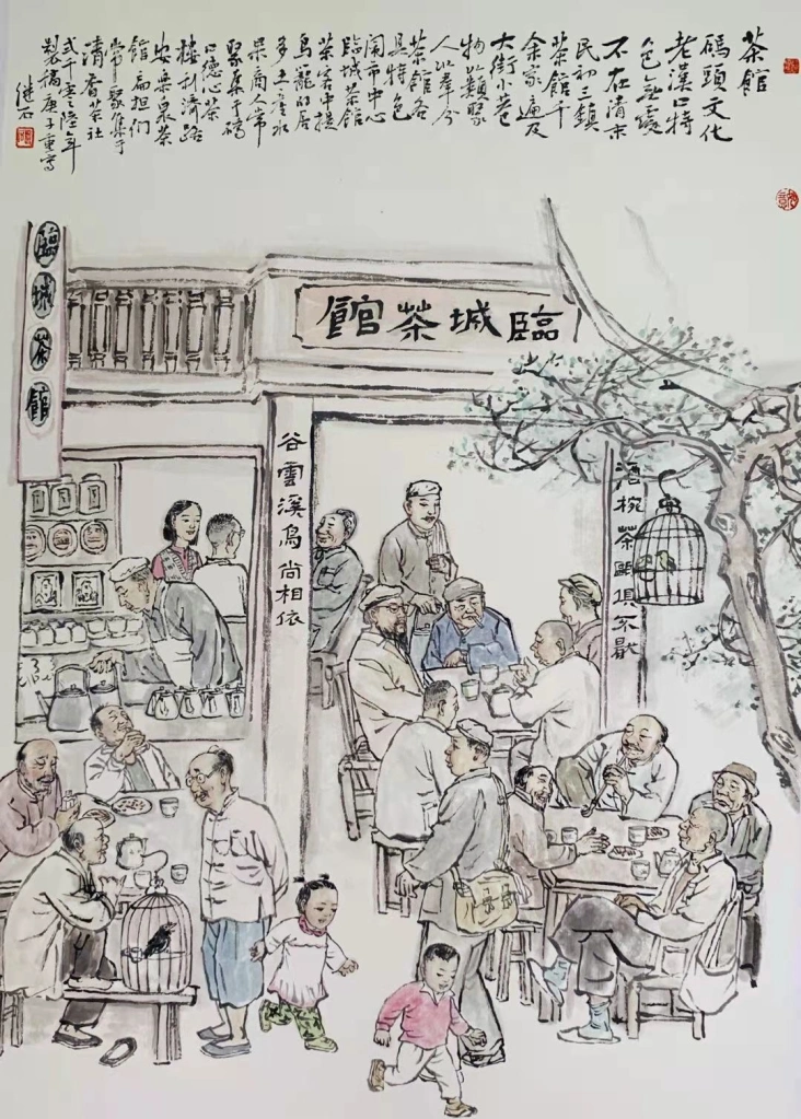 清代,随着武汉商业的日益繁华,往来客商人数逐日增大,城市居民人口急剧增长,在城镇中产生了一个由商人、工匠、挑夫、贩夫以及为城镇上层服务的各色人等组成的市民阶层,对此情形,清道光年间的叶调元在《汉口竹枝词·市廛》中有确实的记载:“茶庵直上通桥口,后市前街屋似鳞。此地从来无土著,九分商贾一分民。” 由“九分商贾一分民”组成的汉口市民,在这座城市比邻而居,街市相见,而商品贸易的流通属性使他们相互之间联系极其紧密,茶馆作为一个沟通彼此的公共场所也就应运而生。如《汉口小志·风俗志》云:“夏间热度颇烈,轻罗薄纱,愈轻愈好,下等劳动家庭有终日赤体者亦有通宵露宿于外者,男女多爱吃茶,以故茶楼日渐发达。”