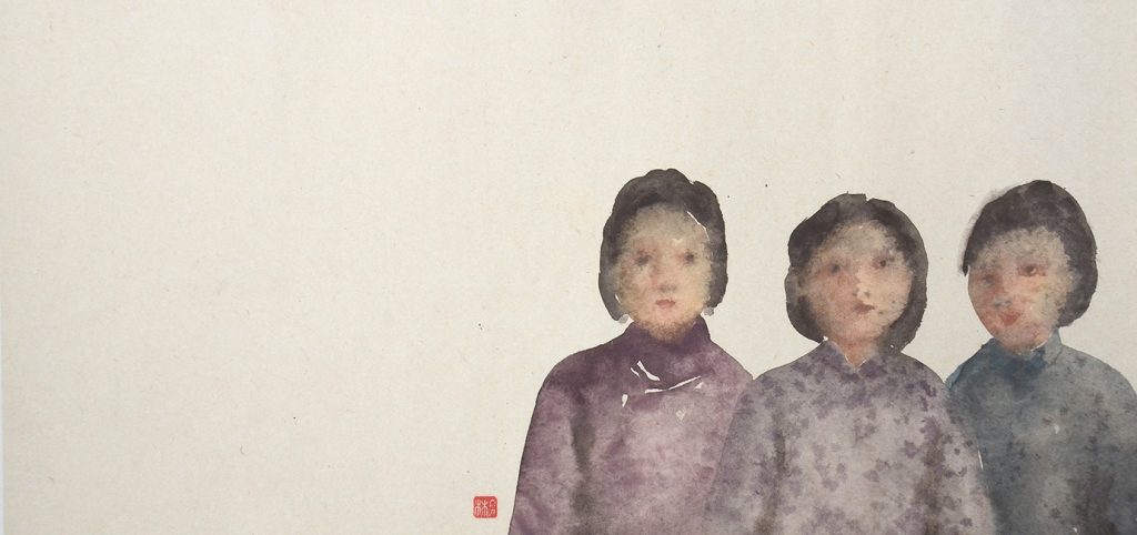 姐妹之二,纸本水墨,70×30厘米,2014年