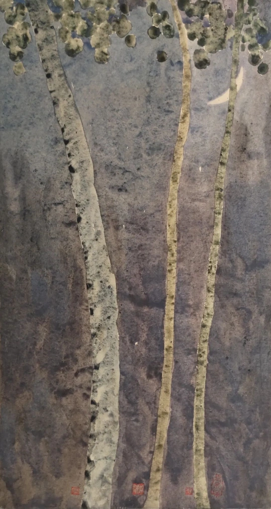郑林的水墨画确能给人以简澹、静穆、质朴、天然之美。她的水墨画在创作上有何独到奇妙之处?