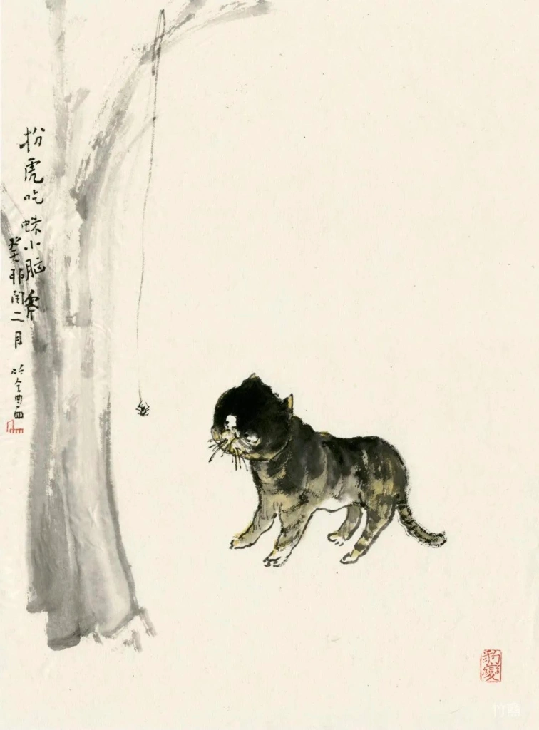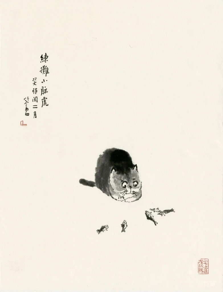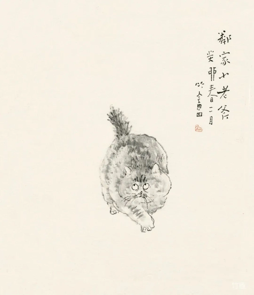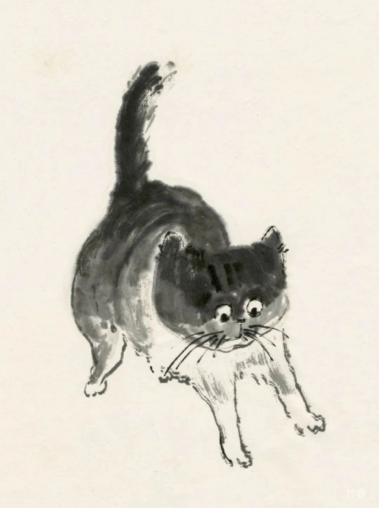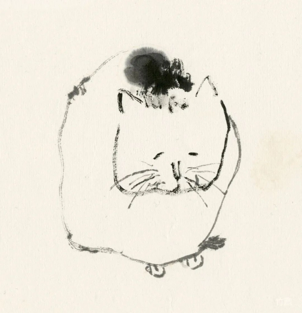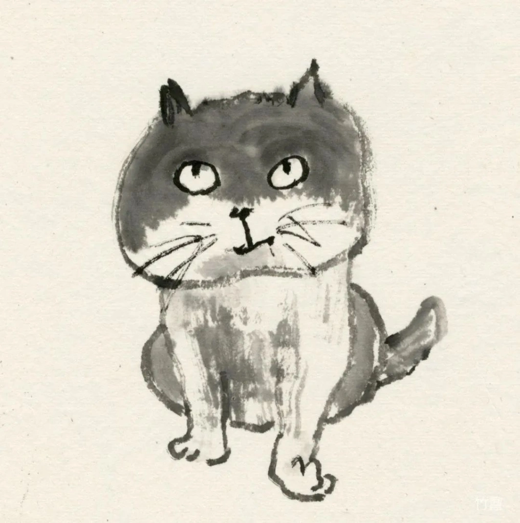 小猫、动物像人一样,有着各自的性情特点。绘画的准确在于传神,妙处在于画的意趣,因此笔墨、造型得围绕这个来。物质、技术越发达的时代,人们看画,往往沉迷于复杂的技术制作,视觉冲击,少见人用这类简淡稚拙,有着写意精神与笔墨意趣的画法。可是艺术创作的本质是什么呢?难道不是表现人对生活对世界的个体理解,抒发真情?