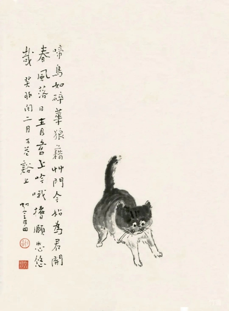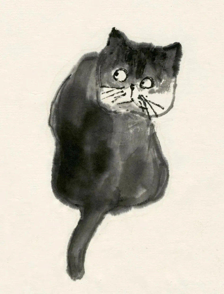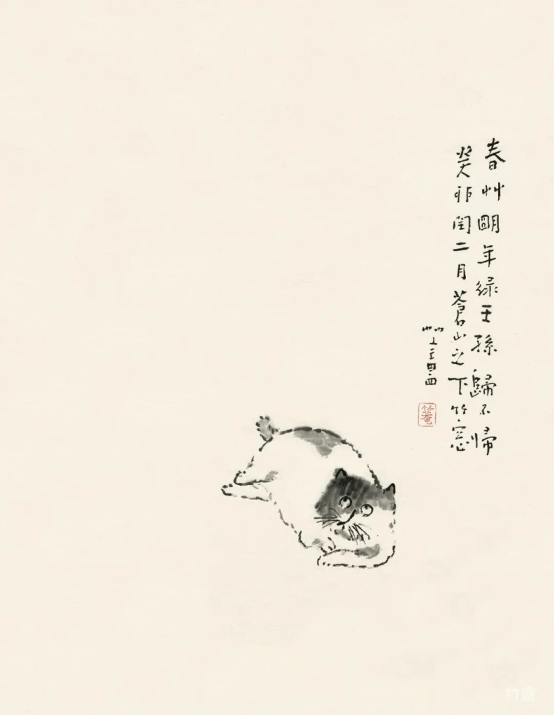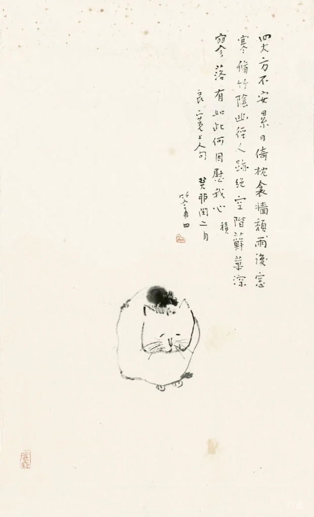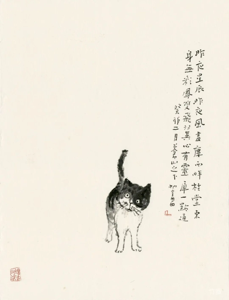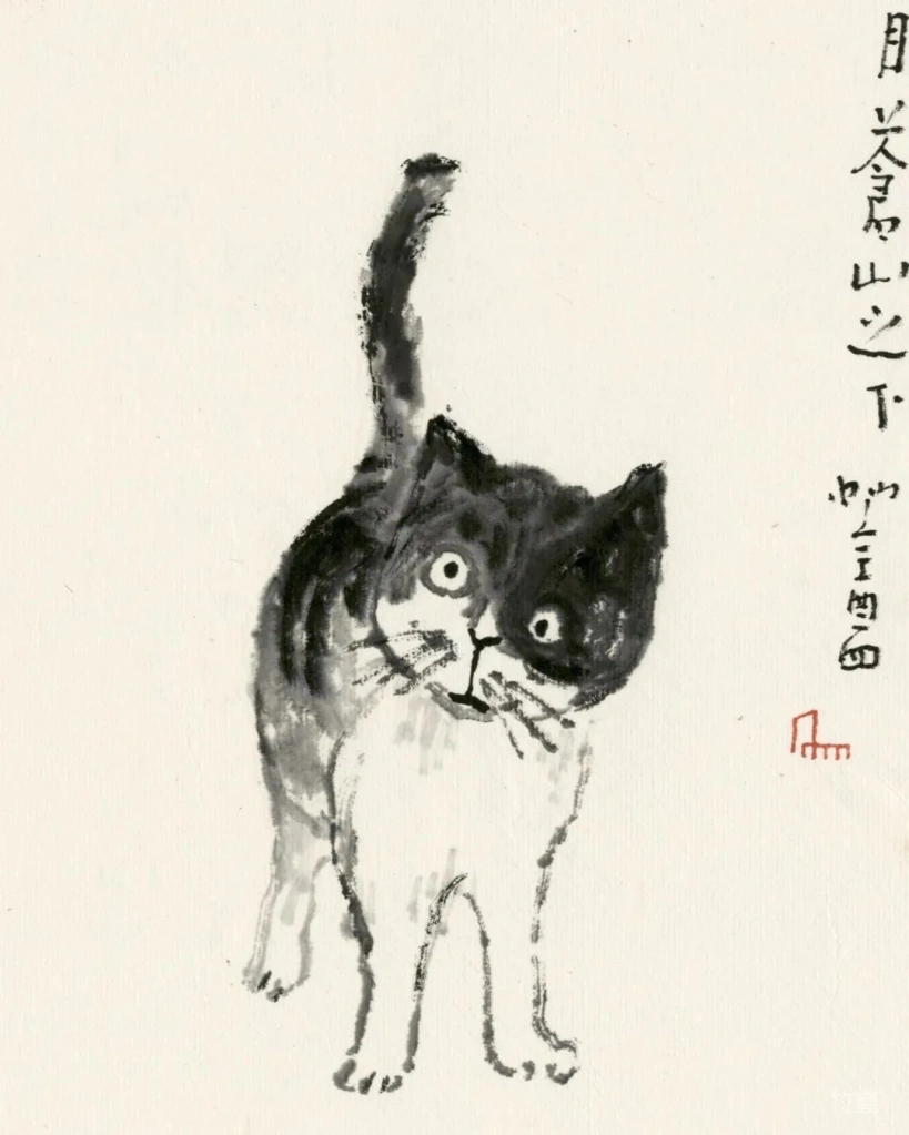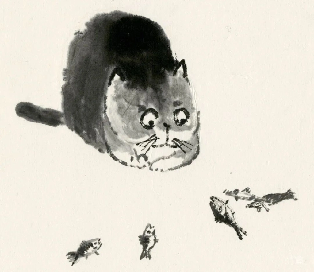 小猫、动物像人一样,有着各自的性情特点。绘画的准确在于传神,妙处在于画的意趣,因此笔墨、造型得围绕这个来。物质、技术越发达的时代,人们看画,往往沉迷于复杂的技术制作,视觉冲击,少见人用这类简淡稚拙,有着写意精神与笔墨意趣的画法。可是艺术创作的本质是什么呢?难道不是表现人对生活对世界的个体理解,抒发真情?