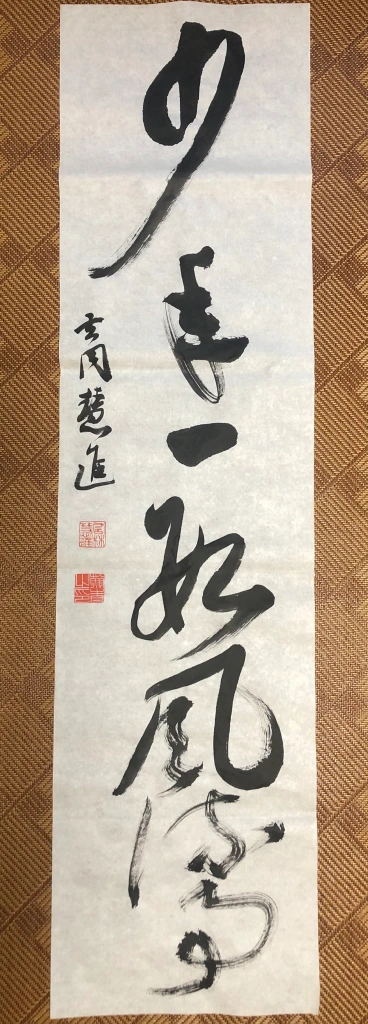 看了看下午写的这几张字,还算可以。一休宗纯、清严宗渭的大字的调调我还是很喜欢,书法的力度极好,最为关键是其格调佳,不以写字之心写字故而最佳。每每看到,醉心不已,常常心追手摹,今天几张也算拟取其意了。这几年醉心于禅宗墨迹,也希望能得诸位祖师大德一二点精神。