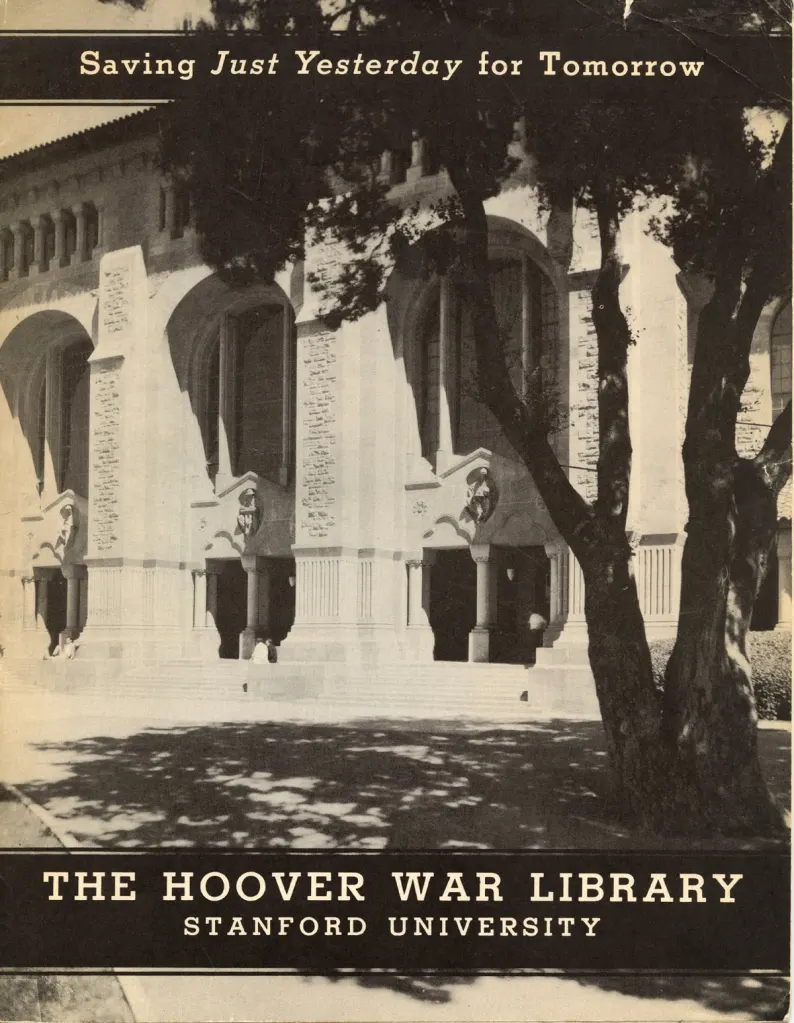 随着访问的进一步深入,我们对胡佛研究院与其图书馆关联之处的基本轮廓逐渐形成了。它最早的名字叫“胡佛战争图书馆”,由美国前总统赫伯特·胡佛于 1919 年为其母校斯坦福大学创办。这个当初专门收集与一战形成和发展有关史料的图书资料中心直到 20 世纪 40 年代末期才招募学者进行研究工作。我们访问时已从最初的 6 名研究人员发展到 250 多名工作人员,包括 100 名研究员、70 多名图书馆和档案馆管理员及专家、80 多名行政管理及研究辅助人员。它拥有 9 个图书馆和档案馆、160 万册藏书、6 万个微型胶卷和 2.5 万种期刊,共约6000 万件的珍贵档案。每年对图书馆的投入约600 万美元。