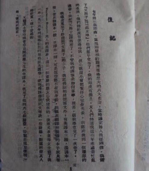 此后记写于一九四三年三月。书原来的持有者在书尾毛笔字写有“卅四、七、三读于王曲军校”。关于王曲军校,即黄埔军校第七分校。设于陕西长安王曲镇城隍庙内,一般常简称该校为“王曲军校”。学校创办于一九三八年,胡宗南任主任,一九四六年元月第七分校正式撤销。毛笔所写读后记印证此书原持有者曾在黄埔军校的王曲军校工作或者学习过。