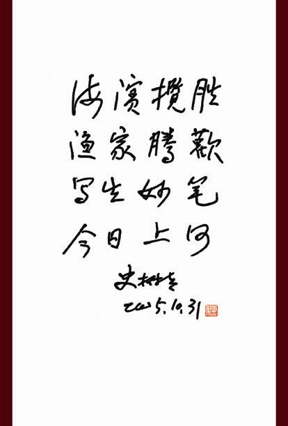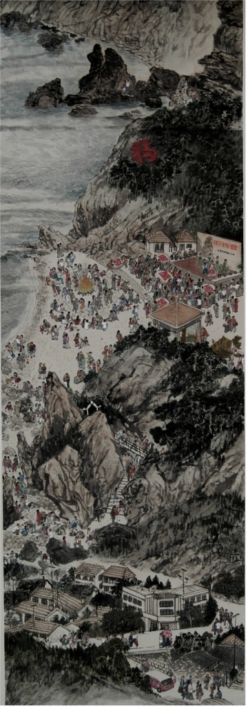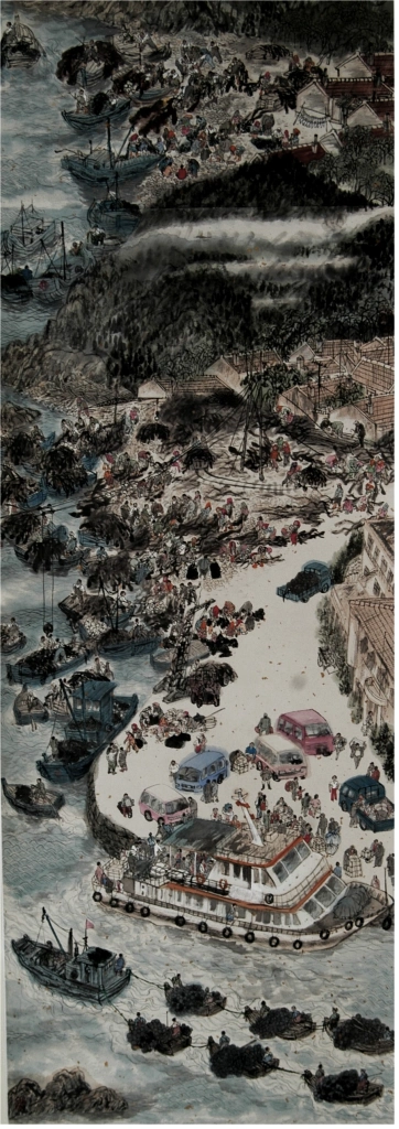 自宋人张择端《清明上河图》开一代风俗长卷画风以来,许多画家乐此不疲。我认为长卷的创作不仅仅是容量的展示,更重要地是作品的艺术含金量,追求局部堪比斗方精,整体画意无尽穷的境地。成喜正值创作盛年,我期望他以《渔家乐》为起点,认真总结,创作出更好的风俗画作品。
