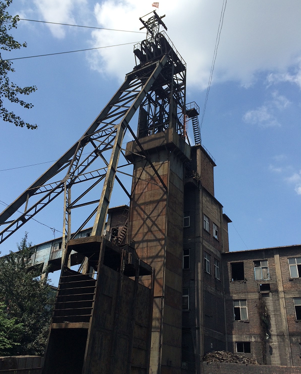 为了使大家对煤矿有所了解,我附上两张照片。图5是矸石山,当煤从地下挖出后,要经过筛选,好煤挑出来,供社会使用,剩下不好的,就是矸石,并把他们堆积起来,日积月累,就形成山一样的形状,所以被称为矸石山,煤的这个筛选过程叫做洗煤。图6是井架和天轮,建在煤井的上方,地下的煤就是通过井架上的天轮从几百米甚至上千米的深处提出来的。