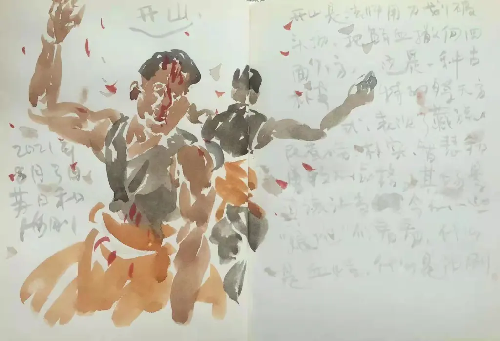 开山。开山是法师用刀划破头顶,把鲜血洒向四面八方。这是一种古朴奇特的祭天方式,表现了藏族人民勤劳、朴实、智慧和勇敢的品格。其场面真该让当今的一些“娘炮”们看看,什么是血性,什么是阳刚。