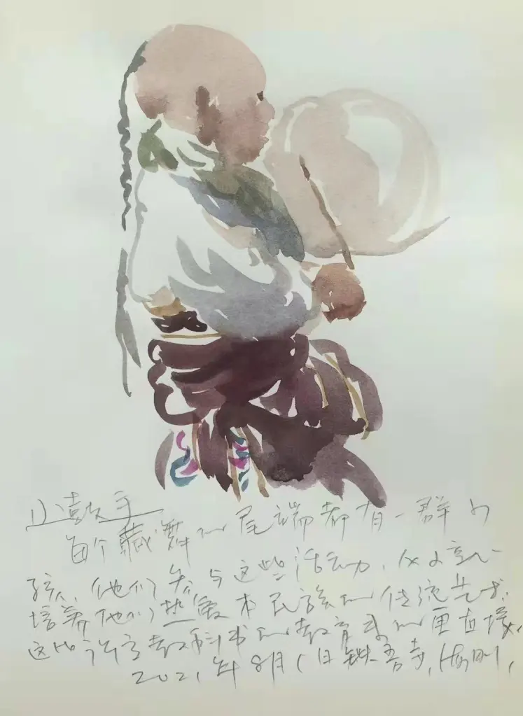 小鼓手。每个藏舞的尾端都有一群小孩,让他们参与这些活动,从小就培养他们热爱本民族的传统艺术,这比许多教科书的教育来得更直接。