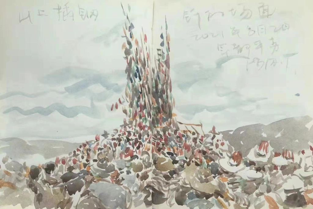 山上插口钎的场面