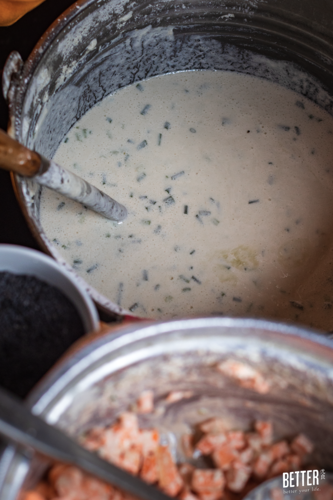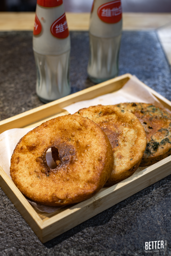 听吴老板推荐点了榴莲面窝、香蕉面窝和香菜面窝,面窝里面全是面包一样的蜂窝状,饱满丰厚的米香包裹着用材扎实的原材料,一口咬下去,有种中西合璧的感觉,形态像是贝果,又有种吃中式煎饼的肥厚饱满。
