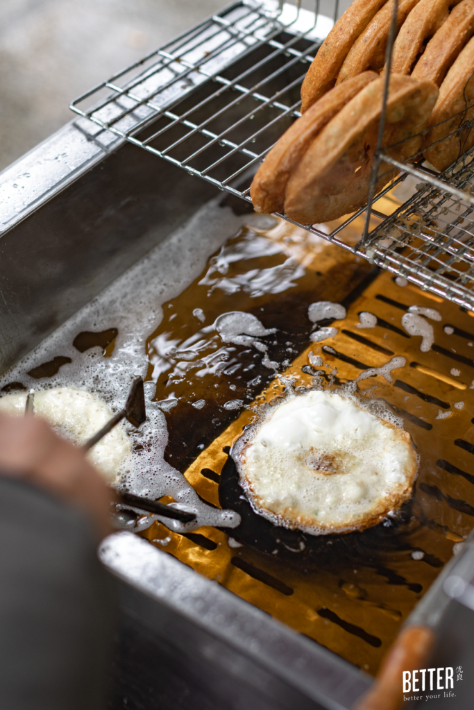 师傅说,技术好的面窝师傅都会把面窝炸成「框框」给老人吃,老人吃不动中间焦脆的部分,就喜欢旁边松软的部分。但年轻人通常相反,就喜欢吃中间脆脆的味道。