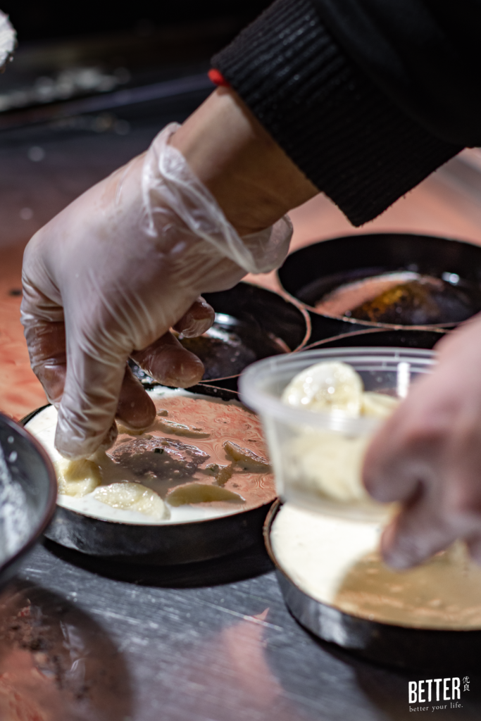 秉着「万物皆可炸面窝」的理念,从最开始的南瓜面窝,到把老婆爱吃的榴莲和讨厌的香菜加进面窝,一直到现在的鲍鱼面窝和以后的小龙虾面窝,吴老板把所有能想到且能用上的食材融进了面窝里,造出了不少「尖板眼面窝」。