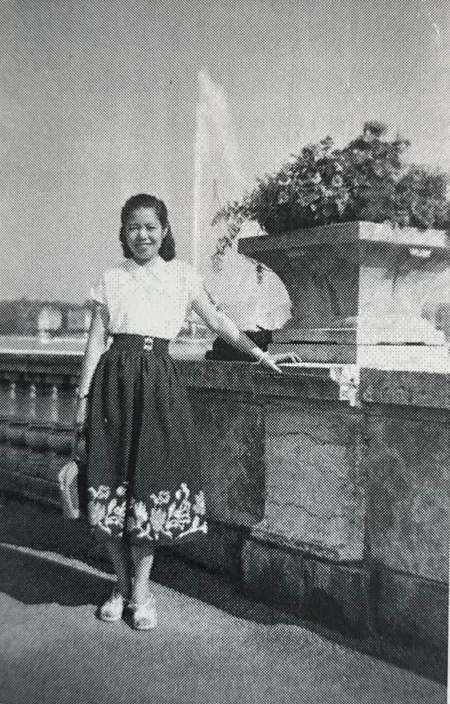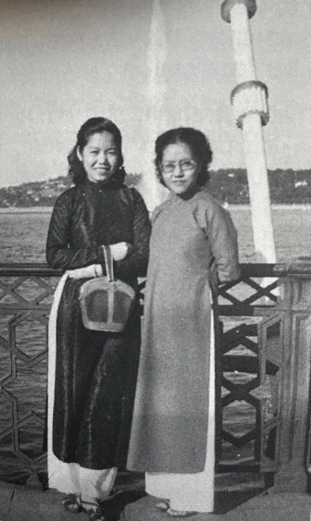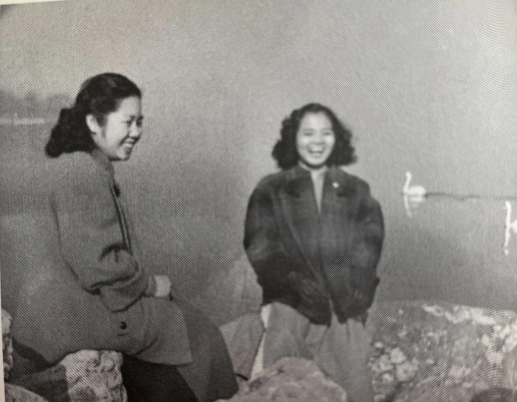 Tam and her roommate Quynh Chau with some swans, 1952.